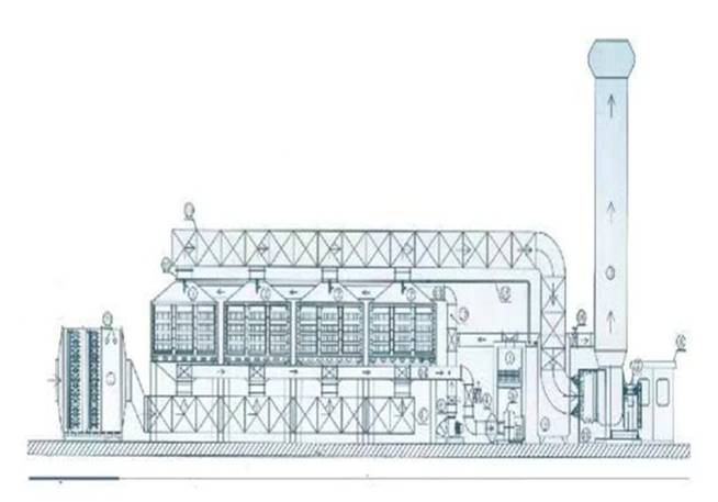 ■ 1.1.4 Regenerative catalytic combustion technology adds a set of heat energy storage and reuse device on the basis of catalytic combustion technology. Usually use honeycomb ceramic as a regenerator, the heat energy produced by the catalytic reaction process through the regenerator storage Wells for heating gas to be processed, make full use of the combustion heat generated by the organic matter, so as to achieve the purpose of energy saving, compared with the conventional catalytic combustion technology, regenerative catalytic combustion technology can greatly reduce the operating power equipment, mainly used in purification of organic waste gas of low concentration (generally between 500-3000 mg/m), The research and practice at home and abroad have proved that for the treatment of organic waste gas, the catalytic combustion technology is one of the more economical and effective purification technologies with broad application prospects. The ecological environment research center of the Chinese academy of sciences had developed a regenerative catalytic combustion device in the early 1990s and tried it out, but the technology failed to be popularized due to poor design and equipment processing technology, especially the damage of switching valves under high temperature operation. During the same period, the United States engelhard company designed a regenerative catalytic combustion device for the organic waste gas emitted from the wood production process, but it has not been widely used in other industries. At the end of last century, mitsubishi corporation of Japan designed a heat storage device using mobile valve switch, and adopted a ceramic honeycomb body with high heat storage capacity, which solved the problem well. For example, 3M USES RCO technology to treat waste gas containing butanone, general motors USES RCO technology to treat waste gas containing styrene, and philips electronics USES RCO technology to treat waste gas containing acetone, toluene, butanone, etc.