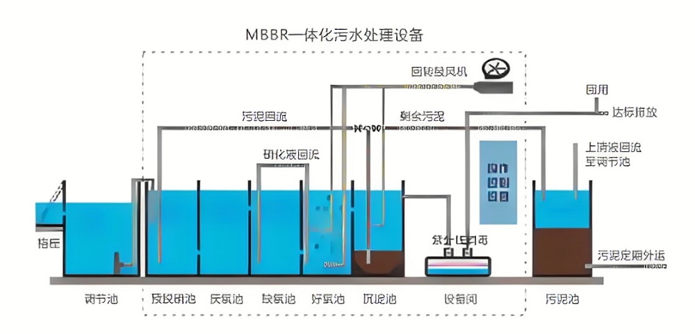 本实用新型的目的在于提供一种结构简单合理、污水处理效率高的MBBR污水处理系统。